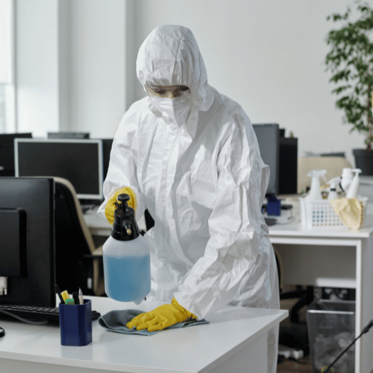 For homes, we focus on bedrooms, kitchens, and bathrooms where daily contact is highest. Many residents also request deep cleaning in Green Community by Eco Guardians before sanitization for a truly complete service. - Commercial and Office Disinfection:
