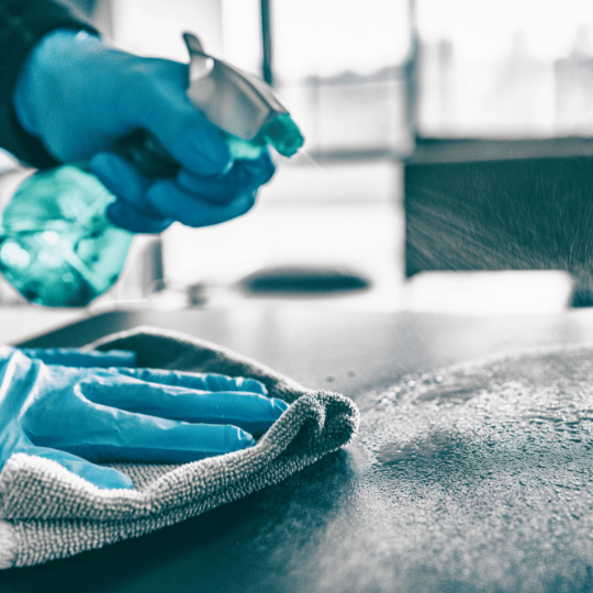Our team wipes down frequently touched areas such as doorknobs, switches, remote controls, desks, and countertops.