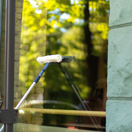 Using organic, streak-free cleaning agents, we loosen grime, grease, and salt deposits from the glass. - Water-Fed Pole or Hand Wash